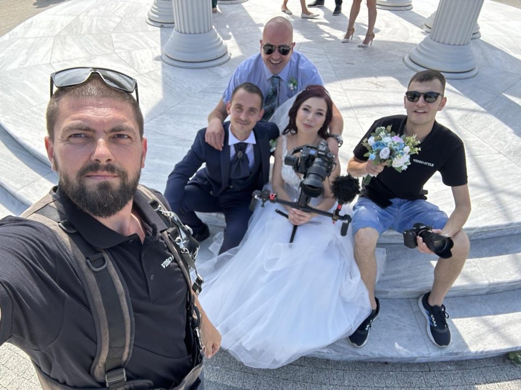 Заснемането на сватбеният ден е от двама оператора.Работим с DSLR апарати Nikon серия Z и Sony A7 III със сменяеми оптики.В процеса на работа използваме дрон (почти през цеия ден – хора, фотосесия, изнесени ритуали).Работим с жироскопични стабилизиращи системи Ronin и Zhiyun Crane, видео стаитиви, моноподи и портативно осветление.Ангажираноста е от 10 астрономически часа.Използваме атмосферен и дигитален звук от пулта на Dj и сместването му при монтажа на сватебния филм.Целият сватбен филм с времетраене от 2 до 4 часа получавате в резолюция FULL HD 1920x1080 на USB Flash памет.Получавате сватбен трейлър ( 3 – 5 минути).За живеещите извън пределите на страната сватбеният филм и трейлър изпращаме и чрез Cloud Storage.